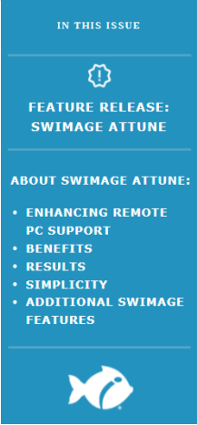 Enhancing Remote PC Support Swimage Attune, the latest feature of Swimage, addresses all of the challenges keeping the PC for the remote worker healthy and functional. As we know, the remote workforce is here to stay. Because of this, managing these remote devices has become more complex and more expensive than ever before. Swimage Attune was created to make the management of remote PCs easy and low-cost, without sacrificing the quality of service. With Swimage Attune, you will be able to do many of the traditional management tasks as if the device is on premise, but even better. Even with the furthest to reach PCs you can: • Monitor the overall PC health • Resolve PC issues rapidly • Minimize the need to replace hardware • Create and deploy custom images, if desired • Maintain full and detailed control over every individual PC’s setting and configuration • Manage and protect all employee data, regardless of the storage location, even if it’s not stored in the common profile folders or in OneDrive • Recover and restore all PC personalities and profiles, including customization, shortcuts, and Office settings • Detect and install and applications from any type of installation source • Allow self-service PC repair for any type of issue • Increase the overall performance of the device • Fully recover a system from malware, BSOD, or other major issues, in under an hour • Never decrypt the PC, regardless of the encryption type Swimage Attune is designed to specifically address remote PC issues and will allow for a better, more secure, and more resilient way to manage the remote worker. Additionally, the Swimage Attune benefits can apply to any device globally, on premise and off, to allow any IT department a more cost-effective way to manage their end-points. Swimage Attune will enhance your existing processes, including Microsoft EPM or other tools, or it can run completely standalone. Depending on your needs, Swimage can be tuned to run on premise, through a private cloud, or on a hosted cloud. | ![]() |